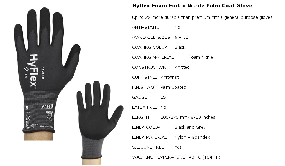 Hyflex Foam Fortix Nitrile Palm Coat Glove